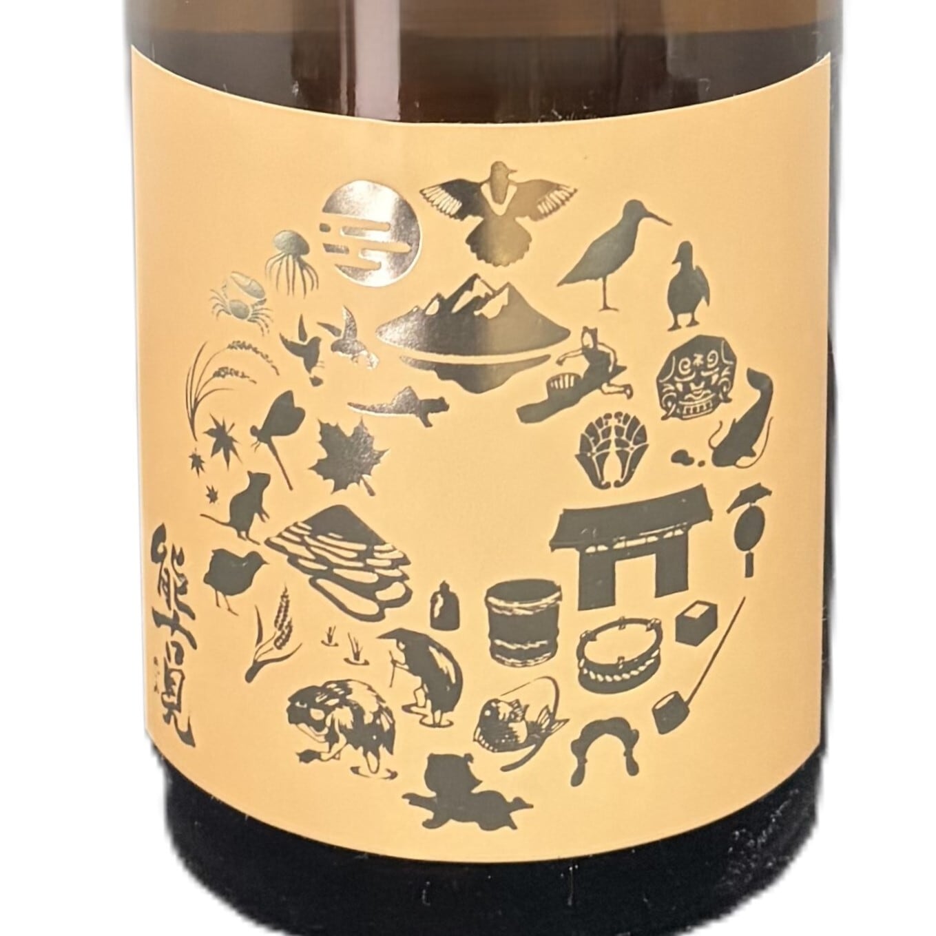 <ラベルへの想い>鹿島に特徴的な生物、文化、自然等をモチーフとし、環状に配置することで、地元鹿島の地で古くから続いてきた人の営みや循環する生態系を表現。古くから続いてきた営みを未来の世代に残していきたいという意味を込めています。