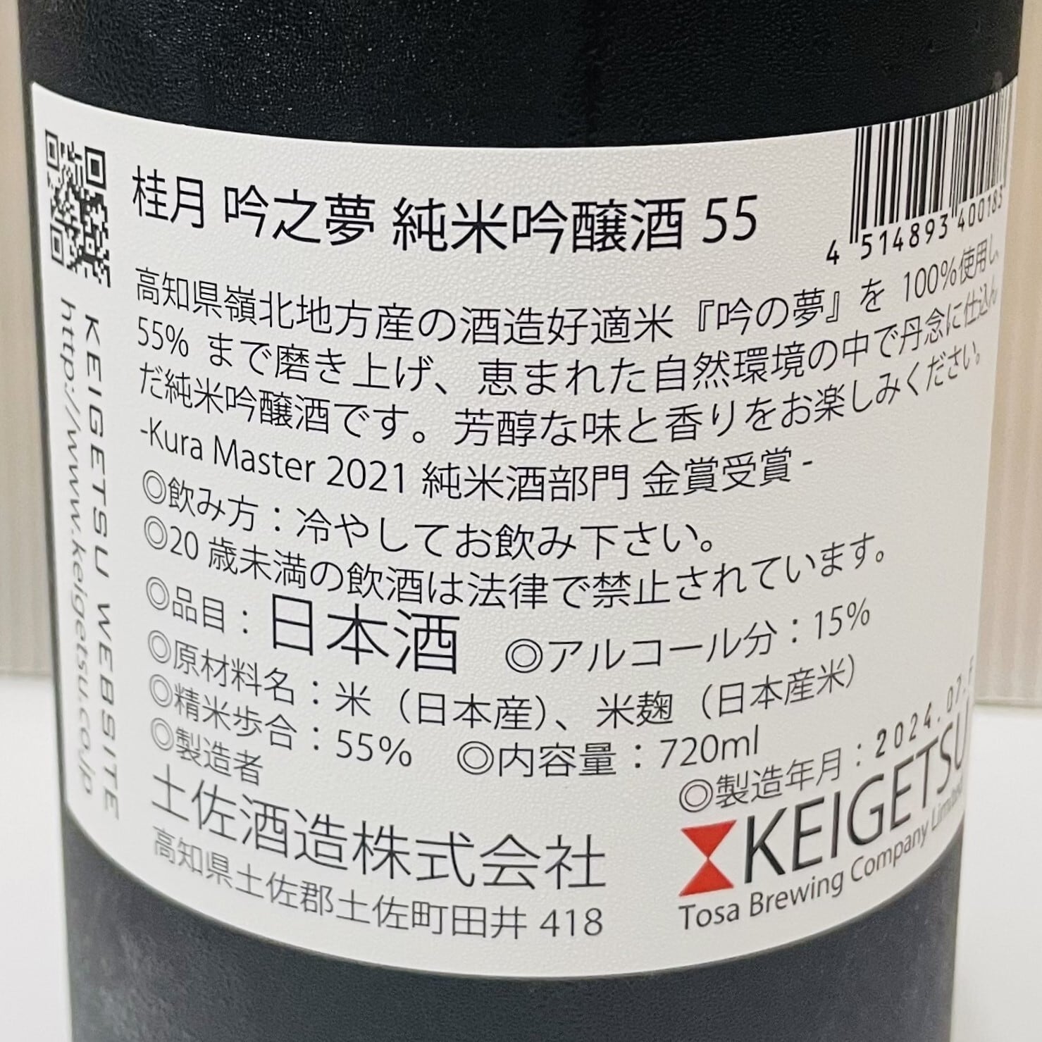 高知県嶺北地方産の酒造好適米『吟の夢』を55%精米し、恵まれた自然環境の中で丹念に仕込んだ純米吟醸酒です。口に含むとふわっと広がる吟醸香と、クリーンな味わいが特徴のお酒です。鴨ロース、焼き鳥、焼きみそ、魚や肉の粕漬などとの相性に優れます。